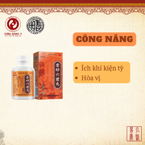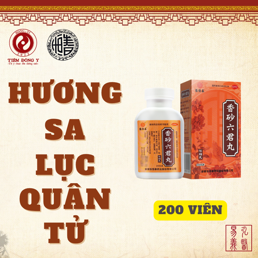 Hương sa lục quân tử hoàn (香砂六君子丸) là cổ phương kiện tỳ hòa vị, lý khí hóa thấp, chỉ nôn, cho tỳ vị khí hư kèm thấp trệ và khí trệ: ăn kém, đầy trướng, ợ hơi, buồn nôn, đại tiện mềm. Bài phát triển từ Lục quân tử thang (六君子汤), gia Mộc hương (木香), Sa nhân (砂仁); các vị chính: Đẳng sâm/nhân sâm, Bạch truật, Phục linh, Cam thảo, Trần bì, Bán hạ, Sinh khương, Đại táo. Công năng: bổ khí kiện tỳ, hóa đàm táo thấp, hành khí hòa vị, giúp tiêu hóa, giảm nôn.
