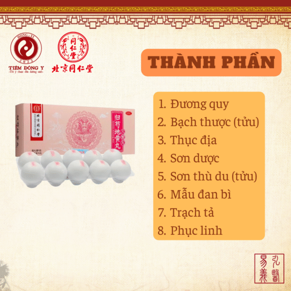 - Thục địa (熟地黄): Tư âm, bổ huyết, ích thận, sinh tủy.