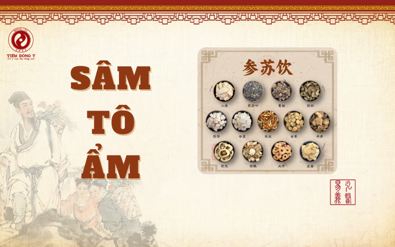 Sâm tô ẩm là Cổ phương thuộc 《太平惠民和剂局方》 (Tống), chuyên trị ngoại cảm phong hàn ở người khí hư, nội có đàm thấp: ố hàn phát nhiệt, không mồ hôi, đầu đau, mũi tắc, ho đờm trắng, ngực đầy tức, mệt‑khí đoản, rêu lưỡi trắng, mạch yếu/nhược. Ý nghĩa: ích khí giải biểu (Nhân sâm + Tô diệp), tuyên phế hoá đàm (Tiền hồ, Bán hạ, Cát cánh, Trần bì), lý khí hoà trung (Chỉ xác, Mộc hương, Phục linh, Cam thảo), gia Sinh khương + Đại táo điều dinh‑vệ.