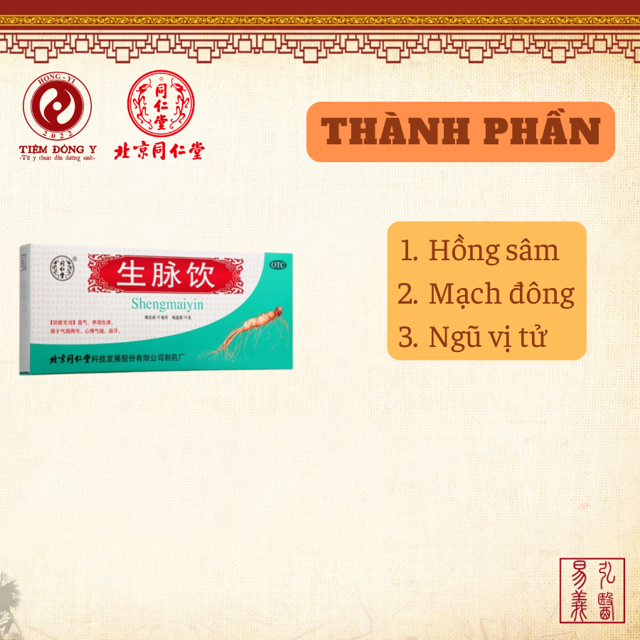 👉 Ba vị phối hợp: Nhân sâm ích khí để sinh tân, Mạch môn dưỡng âm để sinh dịch, Ngũ vị tử thu liễm để giữ tân dịch → tạo thành công năng “ích khí, dưỡng âm, sinh tân, liễm hãn”, chuyên trị khí âm lưỡng hư gây mệt mỏi, ra mồ hôi nhiều, hồi hộp, khát nước.